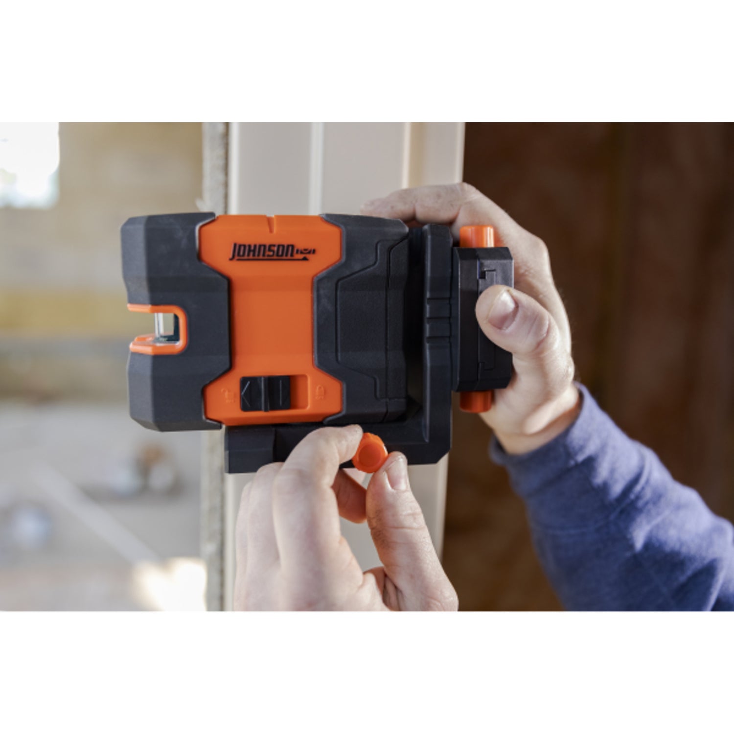 The GreenBrite® Dot Laser Level has an impressive interior range of up to 150 feet and provides unmatched accuracy and precision. Its rugged IP64 dust and water-resistant construction ensures it can handle the harshest jobsite conditions with ease. Powered by long-lasting alkaline batteries, offering up to 12+ hours of continuous runtime, this tool will stay with you throughout the day. The green dot, which is a remarkable 400% more visible than red dots, guarantees clear reference points even in well-lit environments. Its integrated magnetic base effortlessly attaches to metal surfaces, and the included floor mount with front-facing magnets facilitates quick top and bottom track installation. With a locking pendulum for durability during transportation, our GreenBrite® Dot Laser Level projects up, down, left, right and front dots, making it the ultimate choice for a wide range of applications.
